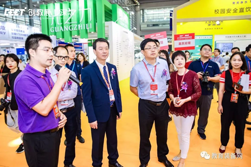 博覽會期間,深圳市教育局副局長、黨組成員,市委教育工委委員趙立,深圳市教育局副局長、黨組成員,市委教育工委委員朱迪儉,深圳市教育局二級巡視員張淶臨,深圳市教育局發(fā)展規(guī)劃與財務(wù)管理處處長薛運(yùn)琪等深圳市教育局及相關(guān)處室領(lǐng)導(dǎo)蒞臨現(xiàn)場參觀指導(dǎo)。深圳教育裝備行業(yè)協(xié)會會長彭錦環(huán)、深圳市教育信息技術(shù)中心(教育裝備中心)主任張惠敏陪同巡展。