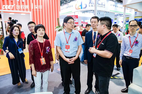 深圳市教育局副局長趙立、深圳市教育信息技術中心主任張慧敏以及深圳市教育裝備行業協會會長彭錦環也蒞臨創維光電展區參觀指導。