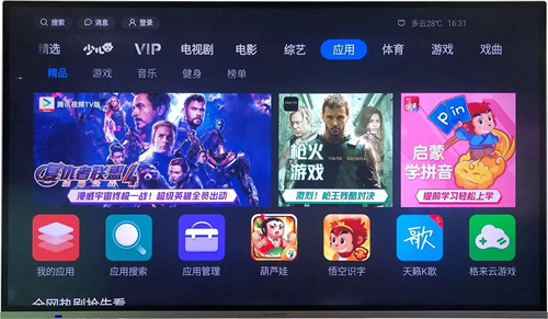 采用3G+32G的強悍硬件配置,保證系統的流暢與運行速度。配置海量應用,用戶可按需下載體驗個性電視。