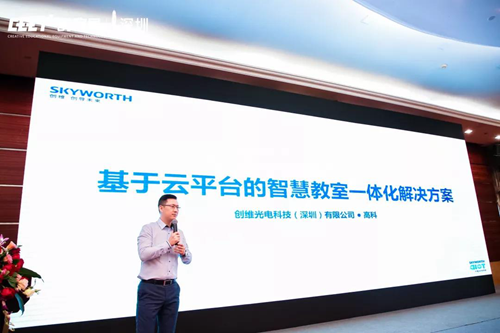 當日下午,在會場舉辦的智能教育裝備創新發展論壇上,創維光電總經理高科受邀出席并發表了演講,他指出:“自國家提出發展“智慧校園”的建設遠景后,便大力發展校園智慧化。但目前我國現階段智慧校園仍處于探索階段,數據的龐大和復雜性使得“智慧校園”的建設面臨著諸多挑戰,而未來基于云端的智慧校園將大大優化現有的教育方式。通過云端數據基礎,學校可建立班級、年級、校際之間的數據分析模型,更好的制訂教學教育方針。對學生個體建立學生個人特質的數據庫,綜合分析出學生的學情畫像,使教師更有針對性和條理性的教學,讓學生德智體美全面發展。”