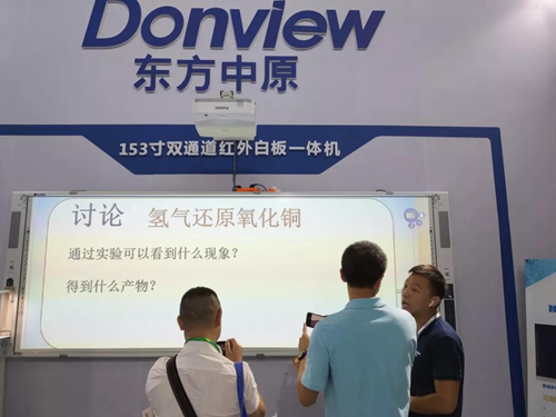 針對不同的教學需求,東方中原也有不同的解決方案,此次展出98寸單側配搪瓷綠板紅外線一體機方案、93寸電容白板+多媒體智能終端方案和86寸電容一體機+互聯綠板方案,既能滿足傳統教學需求也能進行多媒體教學。