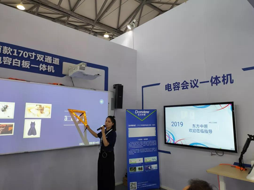 此次展會東方中原帶來了全球首款170寸雙通道超寬電容白板一體機,它目前是全球首款最大的雙通道電容白板一體機解決方案。