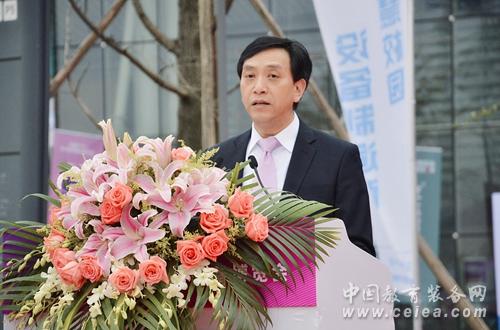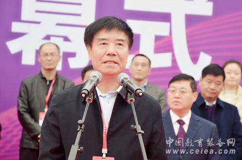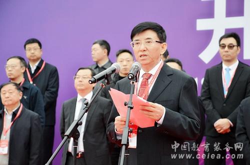 ▲教育部關(guān)心下一代工作委員會常務(wù)副主任、中國教育裝備行業(yè)協(xié)會會長王富發(fā)表講話并宣布博覽會開幕
