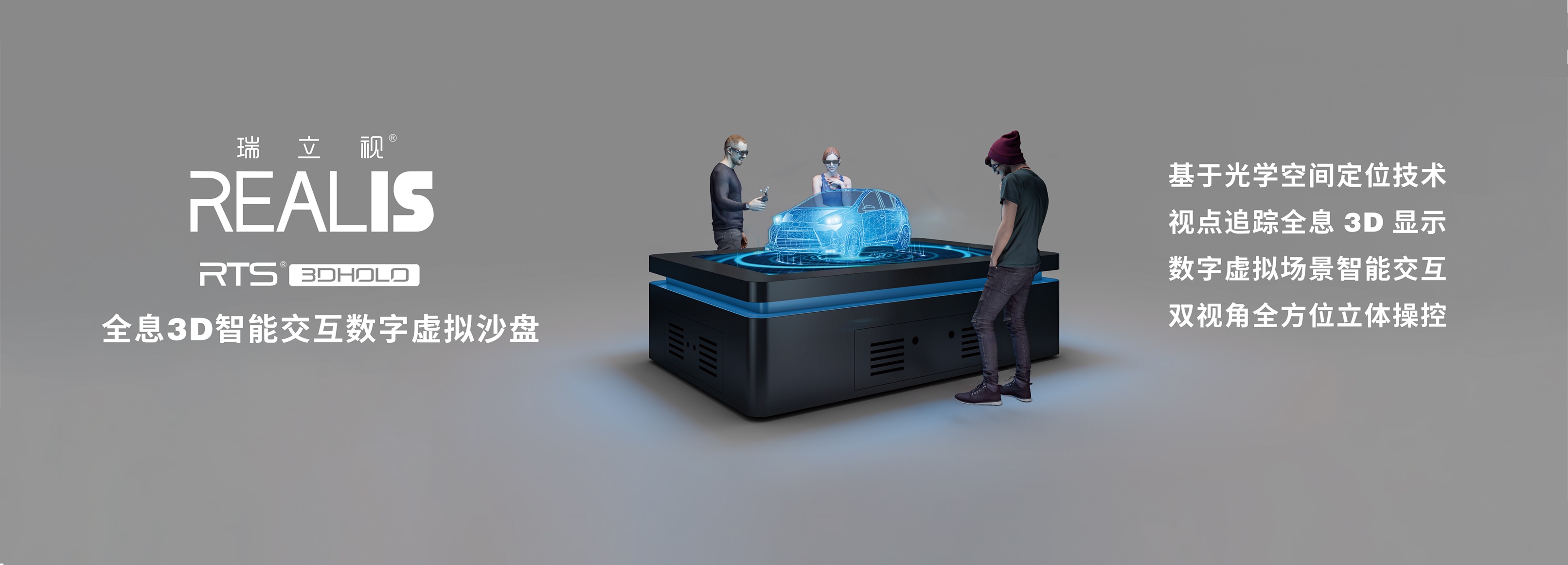 本次發布會主題為“浮光幻影,盡在掌控”,意在將視點追蹤全息3D顯示與智能人機交互的極致融合。發布會的主角是基于瑞立視核心的光學空間定位技術研發的最新產品:RTS-3DHOLO全息3D智能交互數字虛擬沙盤、RTS-3DESK全息3D桌面交互系統以及RTS-DINO紅外光學定位雙目相機。其中,RTS-DINO雙目相機不僅是構建全息3D桌面交互系統重要組件,也將作為一種輕量級的光學定位相機在更多系統中發揮其優勢。而發布會的重頭戲則是RTS-3DHOLO全息3D智能交互數字虛擬沙盤。