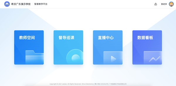 關于資源應用的重要意義,《高等學校數字校園建設規范(試行)》中也提出:數字化教學資源是信息化促進優質教育資源共享的核心要素,是指服務于高等學校課程建設、教育教學過程的數字化教學內容資源。《規范》還指出,高等學校應根據需要,建設校級教學資源管理及應用平臺。 這便要求高校發揮科技的智慧,搭建起擁有數字匯總能力的一站式的平臺,才能滿足全校甚至全區域的需求。希沃為高校用戶提供的,是一站式智慧教學平臺,包含教師空間、督導巡課、直播中心、數據看板。不僅從教學層面幫助高校儲存金課,更從管理層面出發,開通督導巡課與打通校園數據,讓管理者對校園情況了然于胸。