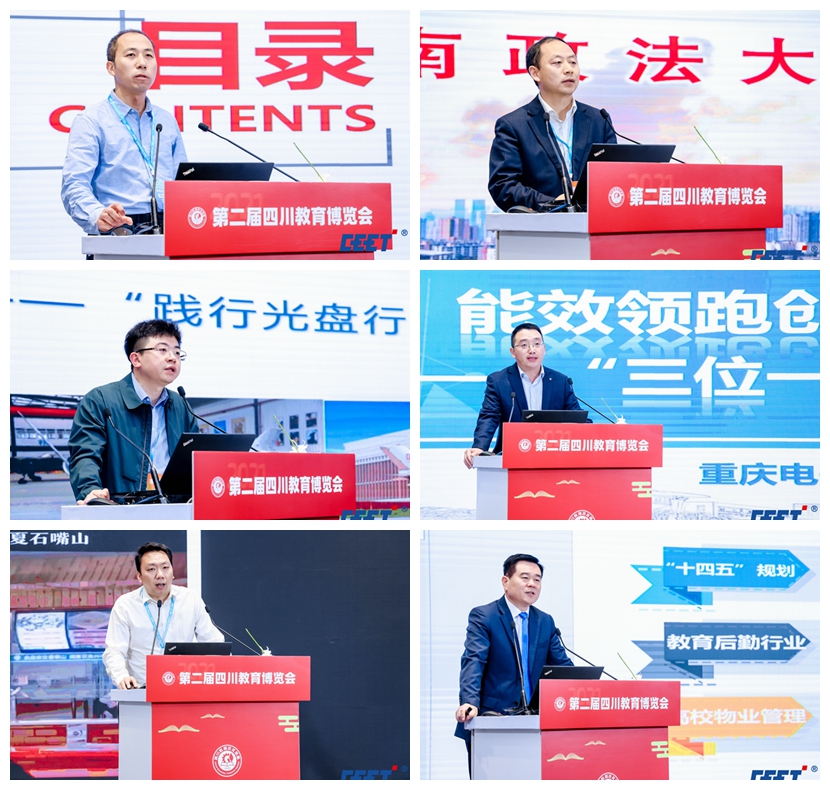 四川大學以《謀劃十四五 構建新格局》為專題,通過把握新機遇、探索新方向、實現新突破、描繪新藍圖等四個方面展開討論;西南政法大學以《提升校園顏值 優化育人環境》為題,通過豐厚校園底色、瓦深厚西政精神、濃厚人文氛圍等三個方面匯報該校校園環境建設情況;成都航空職業技術學院就《全員參與打好厲行節約的“三大戰役”“實踐關盤行動 享受‘美好食光’系列活動分享”》,以美德教育為起點,以美德行動為重點來討論;重慶電子工程職業學院以《能效領跑創示范 綠色發展譜新篇 “三位一體”綠色發展模式經驗交流》作節約型校園建設專題報告。論壇還就《建設校園食堂食品安全智能化管理平臺解決方案分享》 《標準化、智慧化助推高校物業服務高質量發展》等進行專題交流。