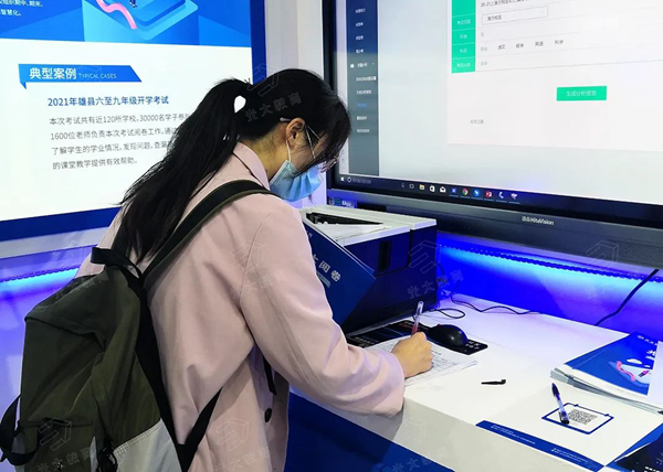 光大教育在教博會上展示了“光大閱卷”、“在線考試”與“紙筆互動課堂”等產品。“光大閱卷”、“在線考試”已上架釘釘平臺,系統與釘釘組織架構完全打通,管理員、老師、學生、家長通過釘釘平臺直接進入系統,考試、閱卷、查成績、查看分析報告一站式完成。