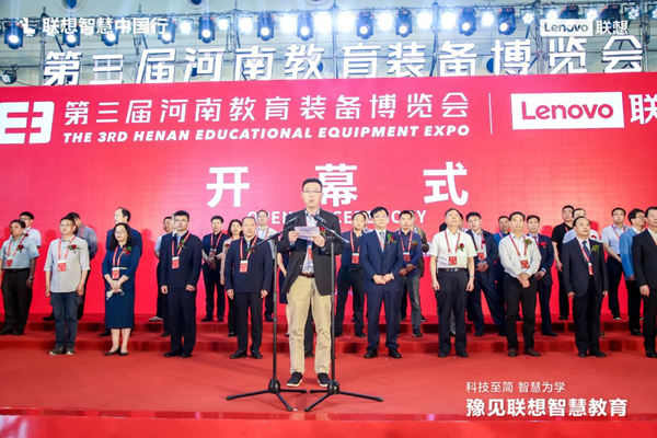 5月14日,聯想作為獨家冠名商參展了第三屆河南教育裝備博覽會。聯想集團中國區商用大客戶業務智慧教育總經理金鑫,進行了開幕式致辭。本次博覽會,來自全省各地市教育系統,高等院校、職業院校、中小學、幼教,以及勞動教育和實踐活動機構人員等預計6萬余人次現場觀展。