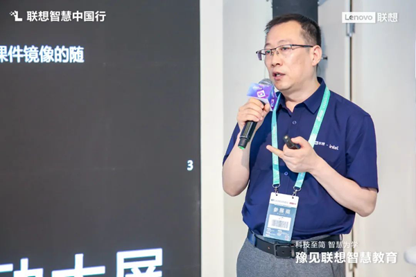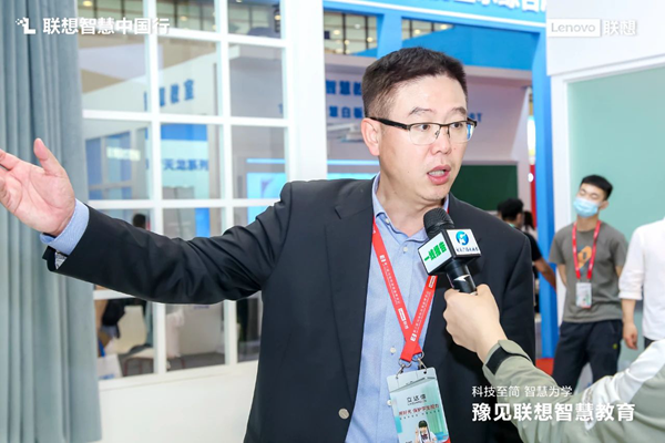 聯想集團中國區商用大客戶事業部智慧教育總經理金鑫在展區現場分享聯想智慧教育戰略,介紹了聯想全景解決方案。作為智慧教育的實戰派,聯想始終致力于以新IT賦能教育變革,以“端、邊、云、網、智”技術架構打造下一代學習空間,同時賦能新型教學和教研,應對操作系統多樣化、應用多樣化、工具多樣化等新挑戰。