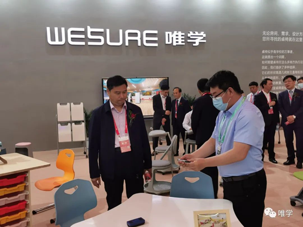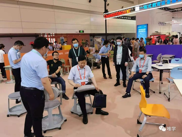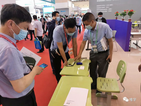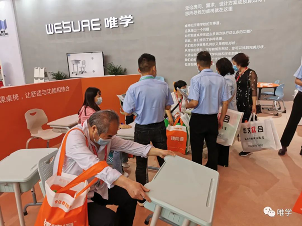 展會現場精彩紛呈,唯學展位參觀群眾絡繹不絕。此次展會匯集了眾多教育裝備行業科技創新企業,唯學作為近年來發展迅速的教育裝備品牌,展示的核心產品,各類型號可升降課桌椅,多功能拼裝桌椅、塑料儲物柜,功能性教室及動態學校空間整體解決方案等,吸引了中國教育裝備、中國教育部、各省教育裝備協會領導、新鄉市教育局領導及其他大批觀眾前來參觀咨詢,現場感受唯學教育裝備的魅力,唯學展品更以其“安全、環保、智能”等優點,深受好評。