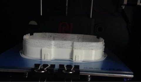 當把噴頭和平臺調平的距離過小時,就會導致不接觸平臺時出絲正常,打印第一層的時候,非常難擠出,出現斷斷續續的絲 、非常透明的絲、卷曲的絲等現象。這也會導致擠出機刨料。