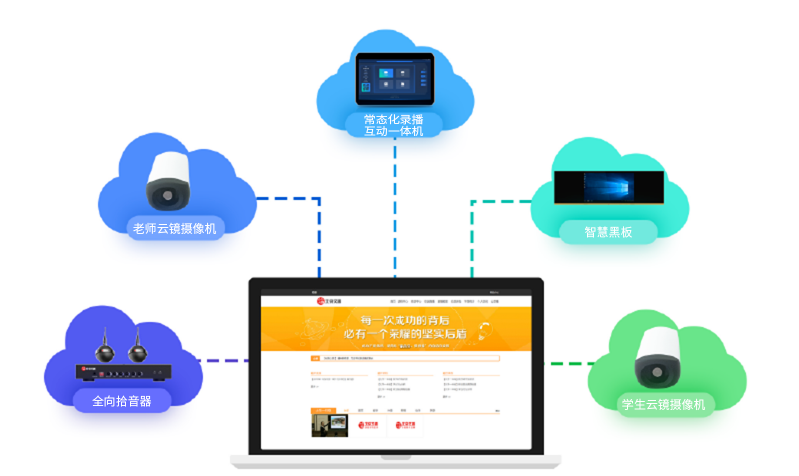 本方案由常態化錄播互動一體機、電子云鏡攝像機、智慧黑板、全向拾音器、資源管理平臺等產品組成。