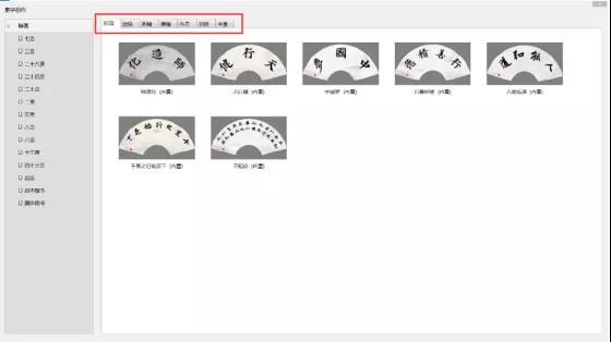(2)選擇練習(xí)模板,有扇面、團扇、條幅、橫幅、斗方、對聯(lián)、中堂。模板為內(nèi)置模板樣式,可自行編輯保存。