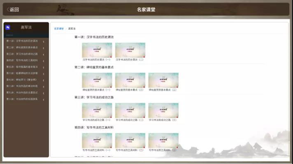 (3)示例:雙擊第一講“漢字書(shū)法的歷史源流(一)”觀看視頻。