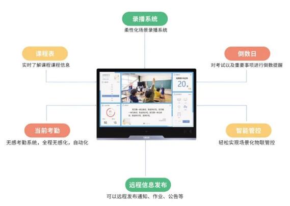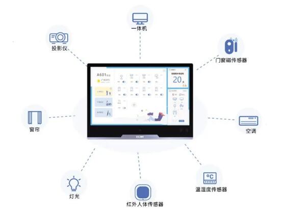用戶不需要再為教室復雜繁多的設備感到焦慮,場景化智能物聯管控可進行一鍵上下課、智能調控溫度、全自動切入直播信號、放學自動鎖機、關閉空調、電腦等,隨時遠程監控查看教室電器狀態的操作,簡便操作,輕松使用。