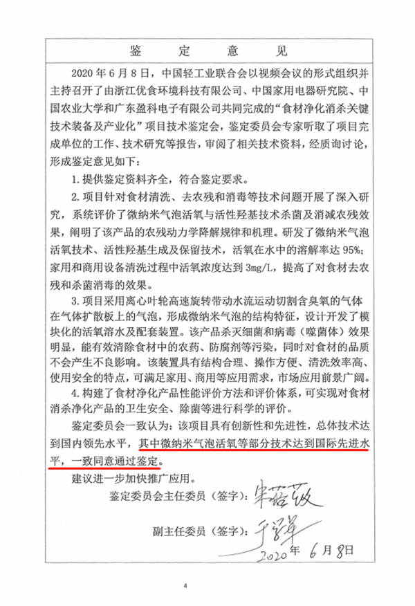 具有自主知識產權的“微納米氣泡活氧羥基”(UISH MOH+ Ⓡ)技術被中國輕工業(yè)聯(lián)合會鑒定為國際先進。