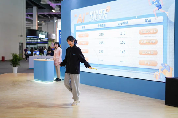 勛然體育此次創新設計展位區域,分區展示了智能跳繩、智慧屏、智能體測、智慧體育校園建設方案等在內的系列產品和方案,吸引了無數參展觀眾的目光。