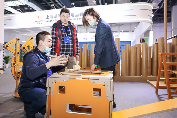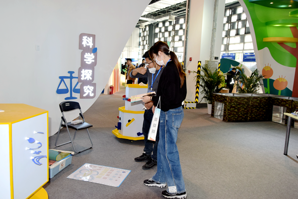 本次博覽會特別設置了“學前教育裝備展示區”。學前教育展區以“幼育、幼學、幼趣”為主題,以“一個小幼苗的成長”為設計主線,設置了“托育教室”“閱讀視聽”“衛生體測”“音樂戲劇”“益智體驗”“結構游戲”6大體驗活動區,活動內容豐富多彩。