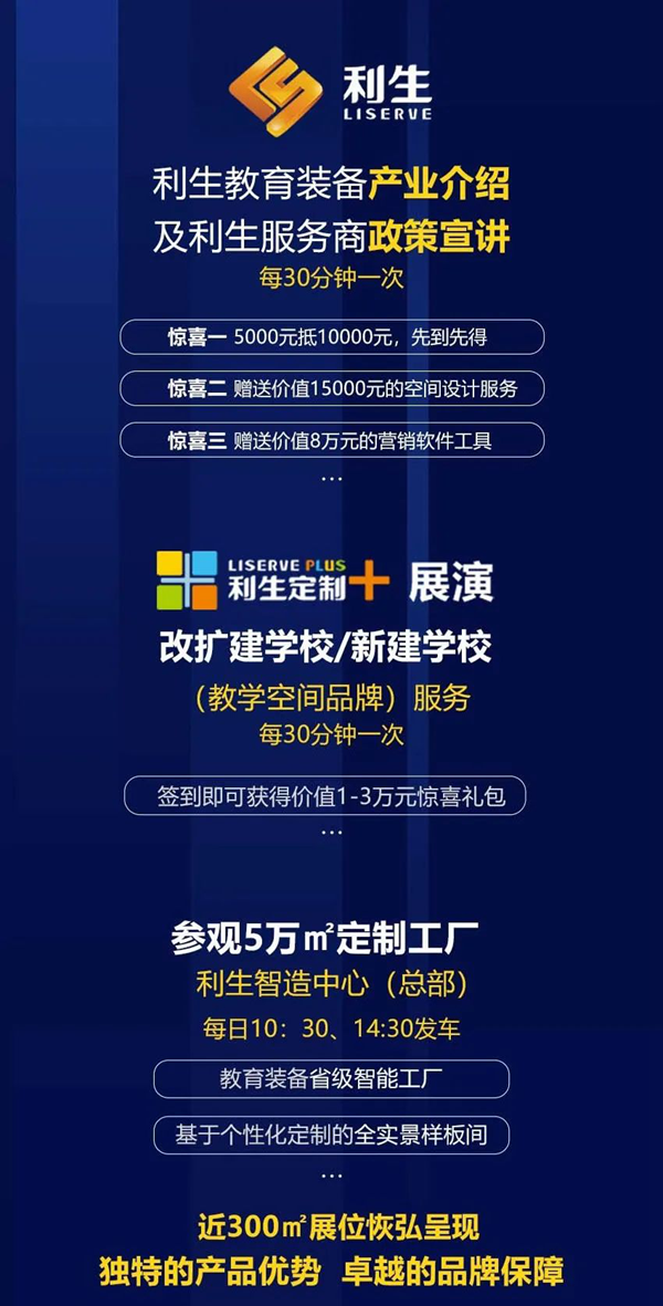 利生公司高度重視此次博覽會的舉辦,攜學科教室綜合解決方案、教學空間綜合解決方案教育照明綜合解決方案、空間快速規劃與裝備指導系統、教學儀器設備綜合解決方案、政采電商平臺服務等六大系列教裝產品及最新創新成果亮相此次博覽會,經過前期精心籌備,在近300㎡的F002展位閃耀登場!