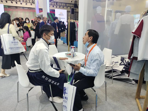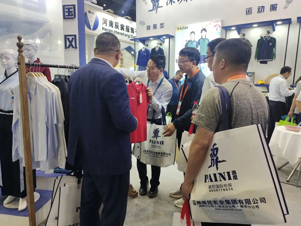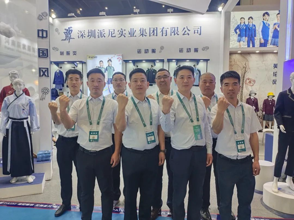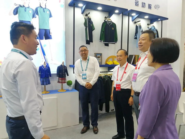 展會期間,領導嘉賓蒞臨派尼展館,參觀指導,與派尼國際校服河南區負責人姚竣豐先生進行了深入的溝通交流,并對派尼服裝給予了充分的肯定。