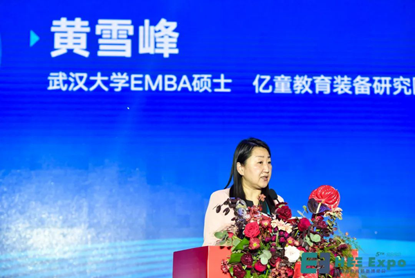 武漢大學EMBA碩士、億童教育裝備研究院副院長黃雪峰出席論壇并致辭。她表示,近幾年我國的學前教育正朝著普及普惠安全優(yōu)質(zhì)的方向快速進步。去年2月份,教育部頒發(fā)了《幼兒園保育教育質(zhì)量評估指南》,這標志著我國學前教育進入了高質(zhì)量發(fā)展的新階段。幼兒園保育教育質(zhì)量的提升離不開優(yōu)質(zhì)的教育裝備,也可以說,優(yōu)質(zhì)的教育裝備是我國幼兒園孩子的教科書,在這樣的背景下,河南省緊跟國家形勢,召開本次論壇具有非常深遠的意義。