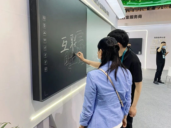 產品創新獎產品-紅外互聯黑板H系列,高精度紅外觸控功能、智能手勢、自定義快捷鍵、前置多功能接口場吸引了眾多現場觀眾駐足體驗,并表示這款產品的交互性非常強,可以很好的增加課堂教學中的互動性和趣味性,讓教學不再枯燥。