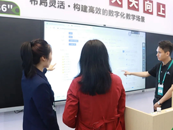此次展會展出了智能交互平板新產品S3+系列110寸結合了多種教學設備于一體,能夠更好地滿足當前新型人才創新教育的新需求,4K高清畫面輸出,優質的試聽體驗,全功能接口升級、桌面快速小工具、NFC快速投屏等功能設計結合安道教育自主研發的多款應用軟件及工具,可以輕松實現多維度互動教學。