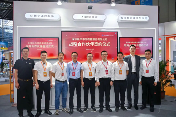 本次展會期間,深圳新華書店教育服務有限公司舉辦了戰略合作簽約儀式,與廣州長鵬光電科技有限公司、深圳市方直科技股份有限公司、廣東劉之頓信息技術有限公司、深圳數聯天下智能科技有限公司、深圳市智樂園科技股份有限公司、深圳市中圖信息技術有限公司等業內知名企業共同攜手,為深圳教育的發展持續貢獻更多優質服務。