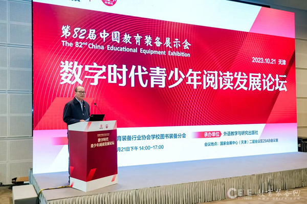 10月21日下午,由中國(guó)教育裝備行業(yè)協(xié)會(huì)主辦,外語(yǔ)教學(xué)與研究出版社承辦的數(shù)字時(shí)代青少年閱讀發(fā)展論壇在第82屆中國(guó)教育裝備展示會(huì)期間舉辦。論壇采用線上線下同步直播方式進(jìn)行,近5000人線上參會(huì)。