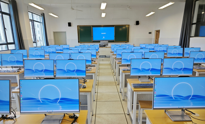 學校與希沃攜手,對機房進行全面革新。希沃電腦采用一體式設計,空間更整潔;低藍光護眼屏,守護師生視力。標配1080P高清攝像頭,助力上機考試順利進行。軟硬一體化管控,維護課堂秩序;一鍵靜音,避免聲音干擾。為師生打造了一個更加舒適、便捷、高效的學習環境。