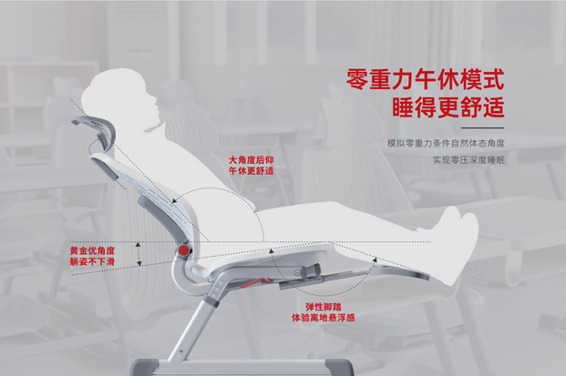 立達(dá)信護(hù)脊健康課桌椅通過人體工學(xué)設(shè)計、全包裹桌椅設(shè)計,貼合學(xué)生脊柱成長曲線。針對學(xué)生聽課場景,通過靠背、坐墊的人機曲度設(shè)計,舒緩脊柱壓力,靠背的全包裹式支撐,輔助維持坐姿中正平衡,預(yù)防脊柱側(cè)彎;針對書寫學(xué)習(xí)場景,桌面的黃金C角設(shè)計可以很好地引導(dǎo)學(xué)生居中坐姿,肘部弧度支撐緩解書寫疲勞,雙色分區(qū)設(shè)計,讓孩子養(yǎng)成正確的學(xué)習(xí)姿態(tài),護(hù)眼又護(hù)脊;針對中午休息場景,護(hù)脊課桌椅可一鍵靜音操作,1秒從坐切換到躺,坐墊同時后仰一定角度,防止身體下滑,即使午睡也能保持好姿態(tài),頭枕和腿托也可根據(jù)身高調(diào)節(jié),舒適方便。