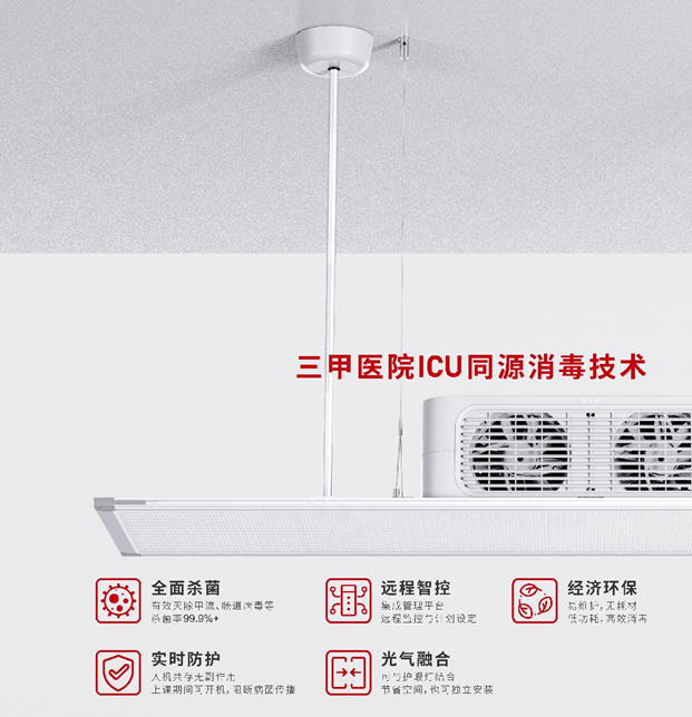 立達(dá)信凈星空氣健康解決方案,采用與三甲醫(yī)院ICU同源的等離子技術(shù),實現(xiàn)人機共存,保證孩子們的學(xué)習(xí)時間不受影響,且殺菌實效經(jīng)國家衛(wèi)健委備案認(rèn)證,殺菌率高達(dá)99.99%。老師可根據(jù)需求制定消毒計劃并自動執(zhí)行,殺毒完成后自動生成報告,實現(xiàn)過程留痕,方便學(xué)校管理,同時設(shè)備0耗材,有效節(jié)約成本,讓老師更省心。