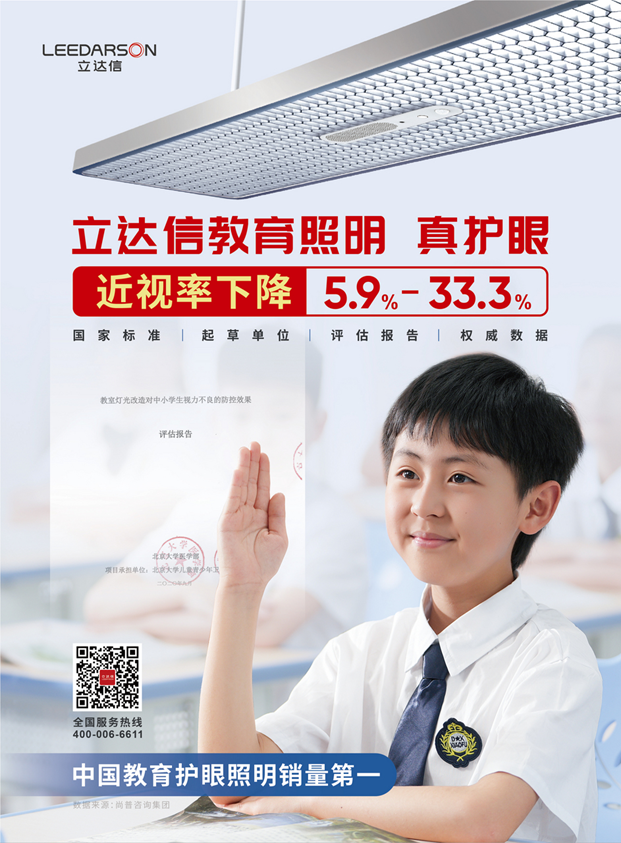 立達(dá)信將自然好光搬進(jìn)教室,全系列采用類自然光譜,與自然光擬合度高達(dá)90%以上,滿足“照度優(yōu)、無眩光、無光頻閃危害、顯色指數(shù)高、色溫適中、無藍(lán)光危害”六大好光標(biāo)準(zhǔn),得到國家權(quán)威機構(gòu)的認(rèn)可。北京大學(xué)醫(yī)學(xué)部、北京大學(xué)青少年衛(wèi)生研究所出具的《教室燈光改造對中小學(xué)生視力不良的防控效果》報告中指出:立達(dá)信的燈光改造顯著提升了教室的照明環(huán)境,改造后學(xué)校的視力不良率和新發(fā)率有顯著下降,最高下降33%。