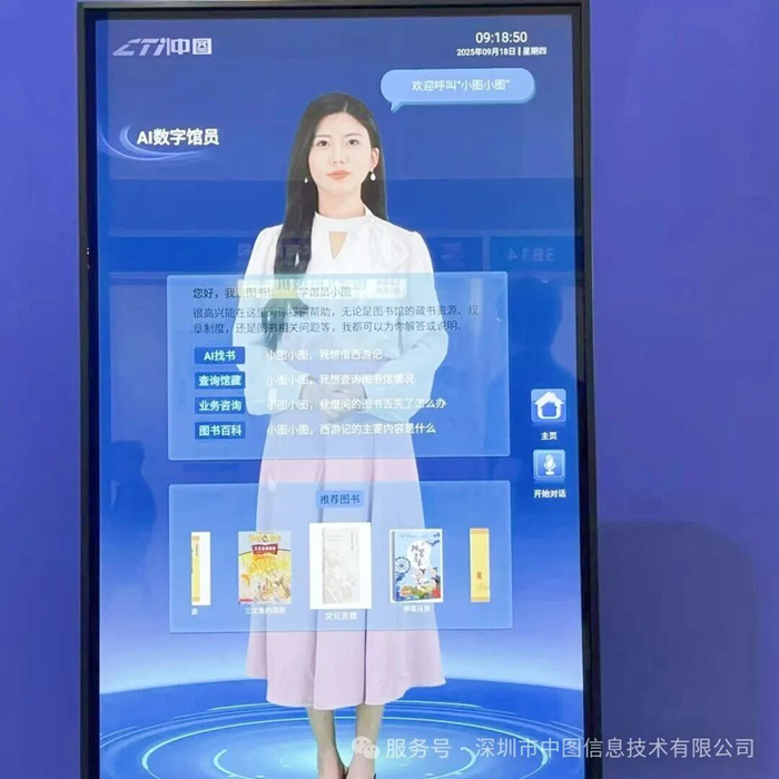 AI館員(全面屏數(shù)字人)作為中圖此次參展的“創(chuàng)新亮點(diǎn)”,以擬人化交互與智能推薦等功能,成為展位互動(dòng)焦點(diǎn)。其基于先進(jìn)自然語(yǔ)言處理與大語(yǔ)言模型技術(shù)融合的“能對(duì)話、懂需求、有溫度”服務(wù),讓觀眾真切感受到科技的人文關(guān)懷。