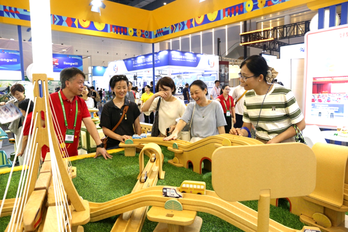 展會現場同步首發“大國工匠·中國水利”與國防主題系列新品,通過將橋梁、水利、航空、軍艦等國家重器融入兒童游戲場景,以寓教于玩的方式傳遞工程智慧與文化精神,拓展園所課程邊界,引發參觀嘉賓廣泛關注與共鳴。