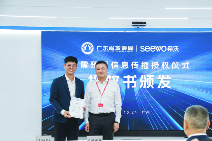 首例!廣東省地震局與希沃舉行地震預警信息傳播授權(quán)儀式,共筑校園安全防線