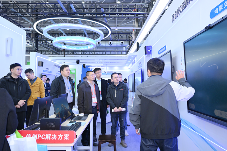 在教育信息安全領域,基于國產化技術架構,實現從硬件芯片到軟件系統的全鏈路自主可控。“天宮之印”信創校園解決方案集可信計算、數據加密等技術,涵蓋信創智能終端、交互智能平板、信創啟課3+教學系統、信創管理應用系統等產品,且啟課3+教學系統已完成多個國產主流操作系統兼容性認證。本屆展示會,長虹依托OpenHarmony5.0.3版本,率先發布行業首個智慧教育場景國產操作系統—“長虹教育鴻蒙系統”。隨著長虹持續以技術突破推動信創生態繁榮,更多安全、適配、高效的國產化方案將服務教育行業,為教育數字化轉型提供堅實的基礎,助力我國教育信息化邁向更高質量發展階段。