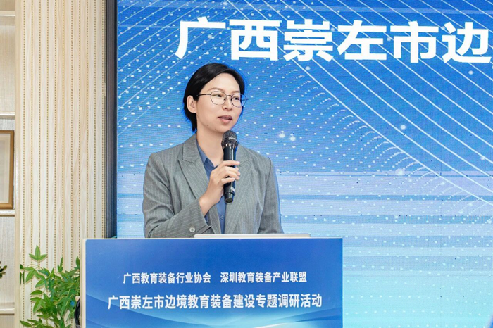 當日下午,桂深教育裝備企業(yè)交流研討會如期舉行。會上,23家教育裝備企業(yè)逐一展示了在智慧教學、校園信息化、實驗裝備、校園安全等領(lǐng)域的最新產(chǎn)品及解決方案,全方位呈現(xiàn)深圳科創(chuàng)產(chǎn)業(yè)優(yōu)勢。并圍繞桂深兩地教育裝備企業(yè)赴崇左開展邊境教育裝備調(diào)研、企業(yè)產(chǎn)業(yè)資源互補、協(xié)同發(fā)展、深度合作等議題展開熱烈研討,凝聚共識、明確方向。