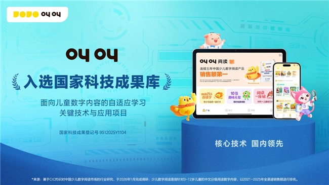 叫叫自主研發的“面向兒童數字內容的自適應學習關鍵技術與應用項目”,還成功入選國家科技成果庫。這一成果標志著其在兒童數字閱讀科技領域的技術創新能力獲得國家級權威認可。