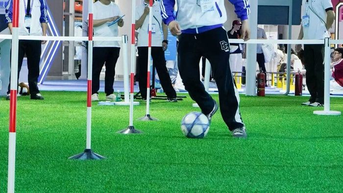 首次亮相教裝展的中考體育足球“運球繞桿”測試區,無需穿戴任何輔助設備,AI視覺系統即可精準捕捉考生運球軌跡、繞桿規范性、沖刺時間等,全程無感識別、成績實時生成,既保證了考試的公平性,又大幅提升了測試效率。一位來自四川某區縣的教育局負責人駐足良久:“公平、精準、高效,這正是我們中考體育改革迫切需要的技術支撐。”