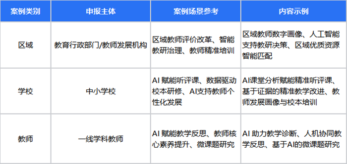 本次征集的"人機(jī)協(xié)同循證教研案例"分為三個(gè)類別,覆蓋區(qū)域管理、學(xué)校研修、教師個(gè)人成長(zhǎng)全維度,無(wú)論您是教研員、校長(zhǎng)還是一線學(xué)科教師,總能找到適合自己的賽道。