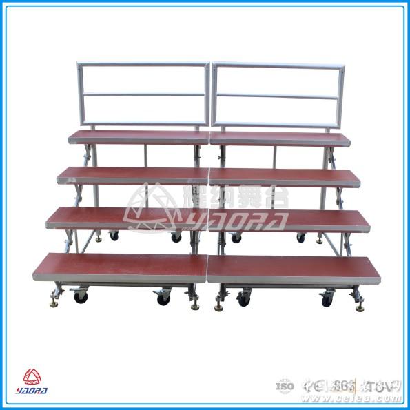 特點:臺階后背帶防護欄,有更多的安全保障;合唱臺用鋁合金材料,輕便,耐用,堅固,不生銹;靈活輕便是他便于搬運和組裝的優勢;伸縮后占地面積小,省空間,易存儲。