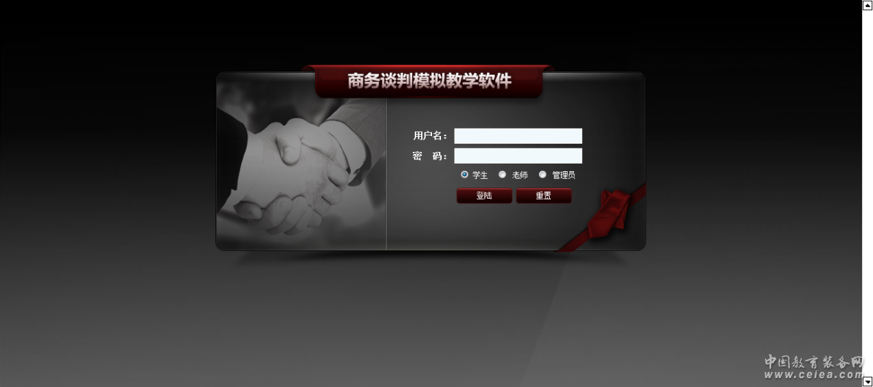 國際商務談判模擬教學軟件介紹 商務談判(Business Negotiations),是買賣雙方為了促成交易而進行的活動,或是為了解決買賣雙方的爭端,并取得各自的經濟利益的一種方法和手段。在《商務談判》課程的學習過程中,學生很難得到身臨其境的體驗,不能很好的達到教學的效果。 《商務談判模擬教學軟件》很好的解決了商務談判課程中實習和實訓的問題,利用計算機進行商務談判知識的學習,同學之間模擬商務談判的整個流程,增加課程的趣味性,掌握商務談判的技巧和實際的業務能力,培養談判場合下人際交流互動技巧以及有效溝通的能力素質。 《商務談判模擬教學軟件》定位于實戰訓練性質的談判教學軟件,可供經濟管理類專業學生的課程實訓使用。軟件幫助學生學習談判的相關知識,提高對談判活動的認識,了解各類型談判的流程規范,靈活實踐談判技巧、掌握談判溝通能力、熟識談判禮儀禮節,認識商務函電談判的方式。
