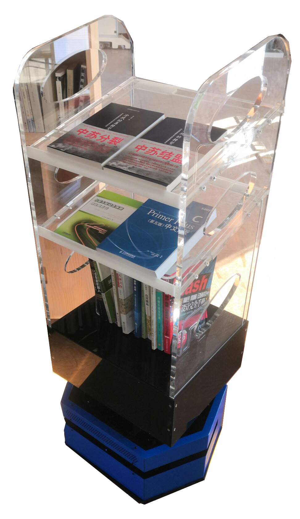 移動智慧書架有兩部分構(gòu)成,第一部分是智能移動車,能夠隨著讀者的去向而移動。第二部分是移動車上的智能書架,由多層透明進(jìn)口亞克力組成,美觀大方可以放置多本書籍,并能從任一層架上拿取書籍;能夠為讀者提供圖書,且對圖書書籍名稱自動識別、拿取圖書次數(shù)自動識別,能夠獲得讀者讀書愛好和書籍閱讀排行榜;能夠及時上傳數(shù)據(jù)至實體書店終端。