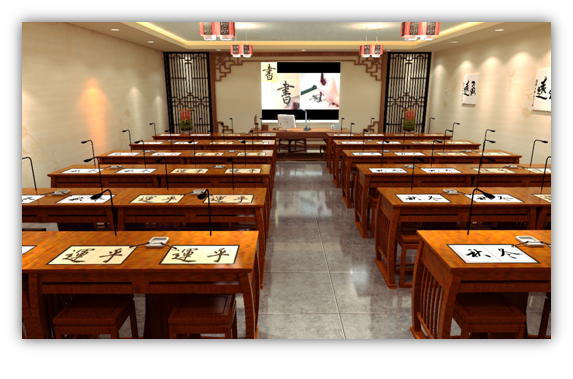 三. EduOffice數(shù)字書(shū)法臨摹錄播教室建設(shè)方案 1. 建設(shè)思路 《EduOffice數(shù)字書(shū)法臨摹錄播教室教學(xué)系統(tǒng)》是依據(jù)教育部《中小學(xué)書(shū)法教育指導(dǎo)綱要》和《全日制義務(wù)教育語(yǔ)文課程標(biāo)準(zhǔn)》自主研發(fā)的數(shù)字書(shū)法教學(xué)系列中的一款高端數(shù)字書(shū)法教學(xué)產(chǎn)品。 系統(tǒng)其靈活的自主學(xué)習(xí)手段、實(shí)用的書(shū)法教學(xué)工具、豐富的全息書(shū)法字及碑帖資源適用于中小學(xué)書(shū)法教學(xué),系統(tǒng)采用學(xué)生臨摹錄播桌,也更便于教師管理課堂秩序。 《EduOffice數(shù)字書(shū)法臨摹錄播教室教學(xué)系統(tǒng)》由觸控一體機(jī)、書(shū)法教學(xué)儀、教師屏、臨摹錄播學(xué)生書(shū)法桌硬件及《EduOffice數(shù)字書(shū)法臨摹錄播教室教學(xué)系統(tǒng)授課軟件》、《EduOffice數(shù)字書(shū)法教學(xué)備課軟件》等教學(xué)軟件構(gòu)成,實(shí)現(xiàn)教師與學(xué)生互動(dòng)書(shū)寫(xiě)講解、點(diǎn)評(píng),如學(xué)生觀看通過(guò)學(xué)生桌屏幕觀看教師講解、示范;任意學(xué)生書(shū)寫(xiě)過(guò)程和作品的展示與講評(píng);教師也可遠(yuǎn)程分配學(xué)生小組,進(jìn)行單人針對(duì)性講評(píng)或小組式對(duì)照講評(píng),有效提高軟筆、硬筆書(shū)法授課的教學(xué)效果。 系統(tǒng)遵循“指導(dǎo)綱要”中書(shū)法教學(xué)的規(guī)范要求,全面涵蓋書(shū)法教學(xué)過(guò)程中的“教、學(xué)、練、評(píng)、創(chuàng)”五個(gè)環(huán)節(jié)。通過(guò)配備的全息碑帖、軟硬筆全息字庫(kù)及基礎(chǔ)教程等課件資源,便于開(kāi)展篆、隸、草、行、楷等字體的軟硬筆教學(xué)、書(shū)法知識(shí)教學(xué);多種臨摹練習(xí)方式,教師分組下發(fā)個(gè)性化學(xué)習(xí)內(nèi)容,臨摹錄播桌實(shí)現(xiàn)“讀帖、摹寫(xiě)、臨寫(xiě)”的書(shū)寫(xiě)學(xué)習(xí)需求;運(yùn)用華樂(lè)學(xué)堂的視頻資源在課后開(kāi)展多種書(shū)體拓展學(xué)習(xí)。 《EduOffice書(shū)法臨摹錄播教室教學(xué)系統(tǒng)》在繼承傳統(tǒng)授課的基礎(chǔ)上,創(chuàng)造了新型書(shū)法授課模式,讓書(shū)法教學(xué)迸發(fā)出新活力。 2.建設(shè)內(nèi)容及功能描述 1)建設(shè)內(nèi)容 本項(xiàng)目將建成交付一套完整的《EduOffice數(shù)字書(shū)法臨摹錄播教室教學(xué)系統(tǒng)》,包括: 1. 書(shū)法教學(xué)主機(jī)系統(tǒng)及輔助硬件 臨摹錄播系統(tǒng)服務(wù)器 大幅面(超A1)教師端書(shū)法教學(xué)儀16E 教學(xué)用21.5寸高清觸控屏 2. 書(shū)法臨摹錄播教室教學(xué)軟件系統(tǒng) 書(shū)法授課系統(tǒng) 臨摹錄播教學(xué)系統(tǒng) 硬筆書(shū)寫(xiě)評(píng)測(cè)軟件 教師示范講評(píng)系統(tǒng) 白板互動(dòng)系統(tǒng) 書(shū)法課件播放系統(tǒng) 字帖生成系統(tǒng) 全息書(shū)法字庫(kù) 書(shū)法課件庫(kù) 備課軟件 3. 教師書(shū)法條案 4. 書(shū)法臨摹錄播學(xué)生桌(2人座,含學(xué)生書(shū)寫(xiě)儀、高清臨摹屏) 5. 高清視頻網(wǎng)絡(luò)、集控系統(tǒng)及綜合布線 2)功能描述 體系化課件資源,讓教師輕松上好專(zhuān)業(yè)書(shū)法課 1. 軟筆書(shū)法教學(xué)資源 1) 與教材配備的課件資源 2) 軟筆楷書(shū)、行書(shū)、隸書(shū)基礎(chǔ)講解課件:300個(gè)課件,共1680課時(shí),全息字均具備摹寫(xiě)動(dòng)畫(huà)、雙路示范視頻(解說(shuō)版) 3) 與教材同步的隨堂練習(xí)課件 4) 書(shū)法知識(shí)課件: 275個(gè)課件,共825課時(shí) 2. 軟筆臨摹練習(xí)課件 3. 硬筆書(shū)法教學(xué)資源
