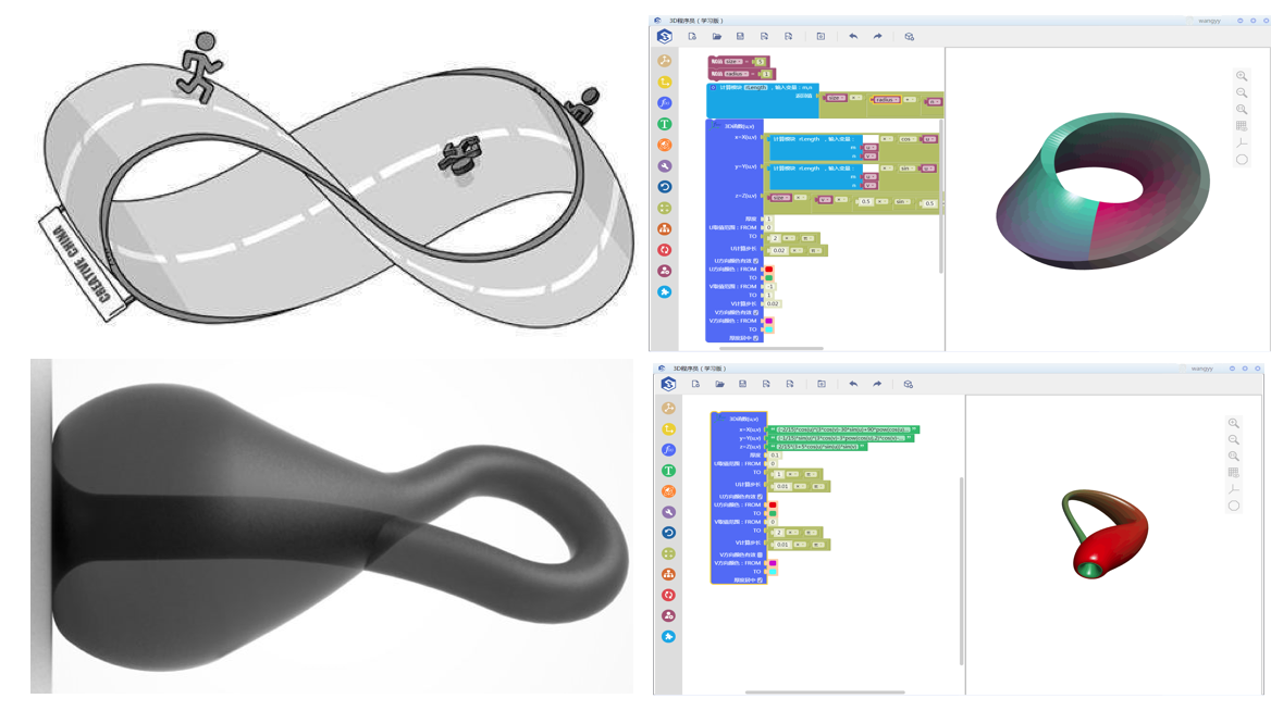 充分結(jié)合所學(xué)的數(shù)學(xué)知識(shí),如圓錐、圓柱、直線/曲線的斜率等基本概念,并將其通過Scratch、Python等編程方式進(jìn)行3D數(shù)學(xué)建模,對(duì)生活中常見的物品進(jìn)行模仿設(shè)計(jì),使其成為具有一定功能的創(chuàng)意產(chǎn)品