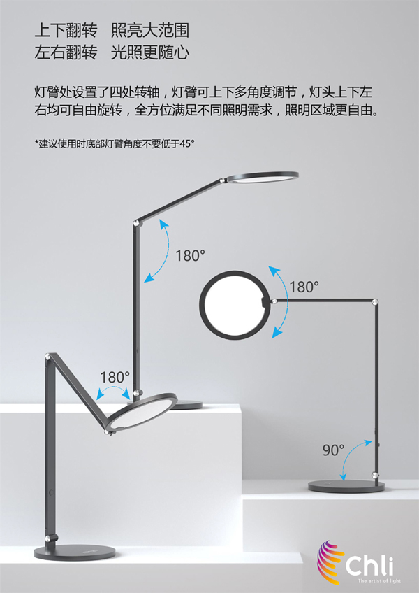 6、燈臂設(shè)計四處轉(zhuǎn)軸,燈頭上下。