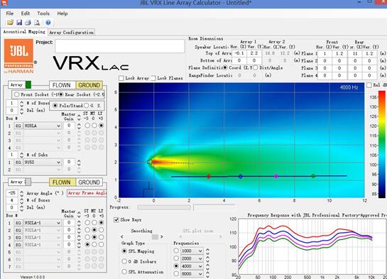 我們設定所有的范例場合至少能提供一般音樂需要的105dB的聲壓級的指標,并提供一個特定觀眾區(qū)域非常均勻的(6dB之內)覆蓋范圍下,我們就來看看JBL