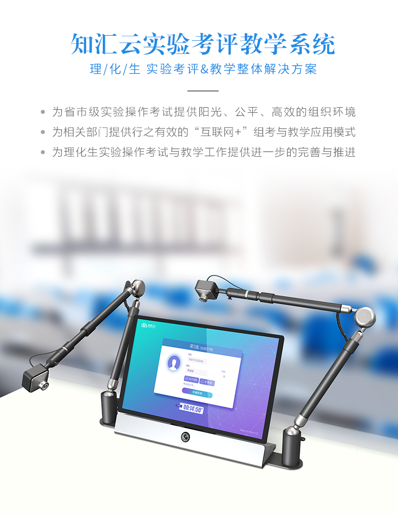 知匯云實驗考評教學系統,為省市級實驗操作考試提供陽光、公平、高效的組織環境;為相關部門提供行之有效的“互聯網+”組考與教學應用模式;為理化生實驗操作考試與教學工作提供進一步的完善與推進。