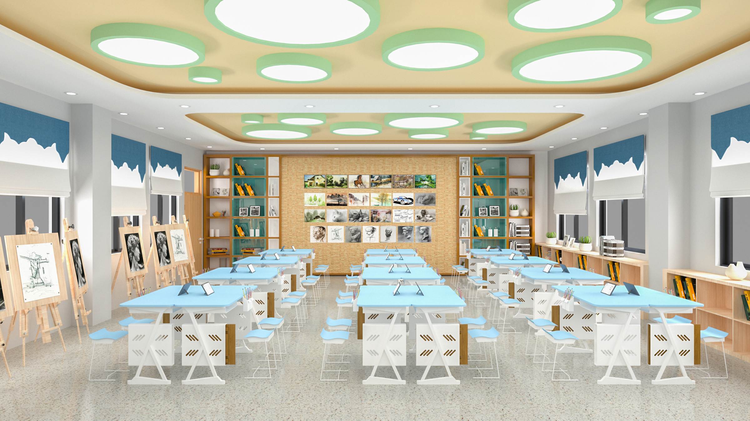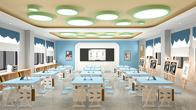 翰墨派美術教室主要是在基于傳統美術(國畫)教學的的基礎上,進行數字化教室的軟硬件設施建設,教室的建設工作主要是提高美術教學的效率,解決目前學校缺乏師資的難度,為學校建設能同時容納多名學生進行藝術教育的高端智慧美術教室。